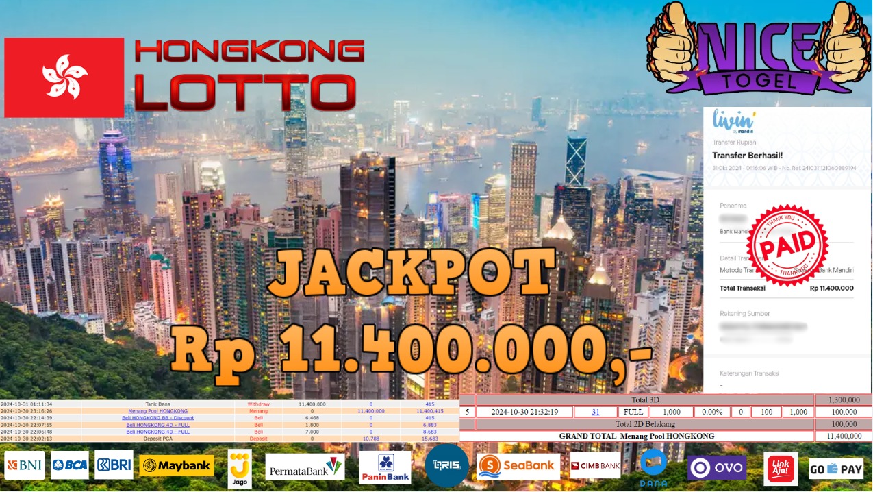 Selamat kepada User id : hans*** Telah berhasil mendapatkan kemenangan besar pada permainan TOGEL hongkong lotto Dengan kemenangan Sebesar Rp.11.400.000,- Setelah mengisi formulir withdraw dengan kurung waktu hanya 5 – 10 menit pihak NICETOGEL sudah melakukan transfer kepada pemilik Userid dan dana sudah dapat di cairkan oleh pemenang. Bukti pembayaran yang kami berikan merupakan bukti pembayaran yang SAH / VALID yang langung di dapatkan melaui tanda transfer transaksi dari Bank yang di tuju.