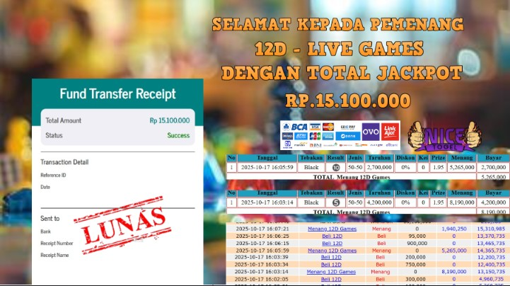 BUKTI JACKPOT 12D – LIVE GAMES Rp 15.300.000,- LUNAS